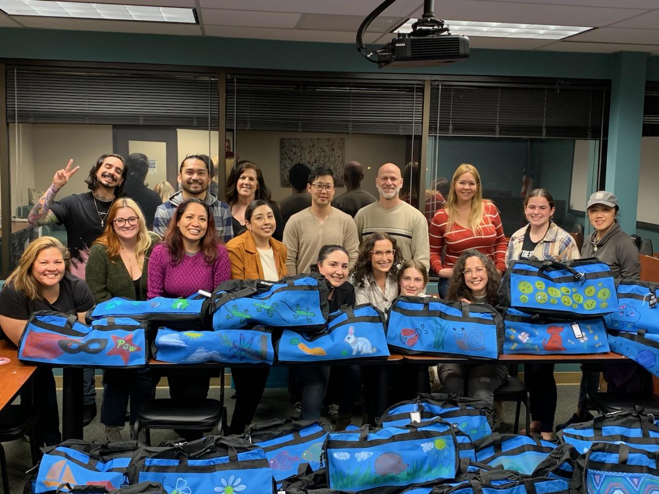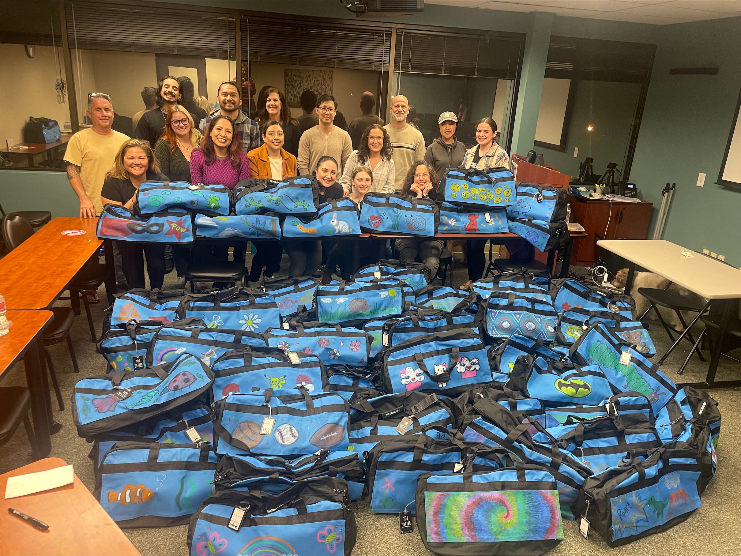 One of the best parts of this charitable campaign was getting to build the sweet cases together with some of our local ISYS/CSL work-family. This was no small feat and required 2 days of volunteers on two separate weeks, but we did it, and had fun in the process! Everyone created amazing and original works of art to decorate them too. Who knew we have so many incredible artists! It was impressive to see all the finished bags.